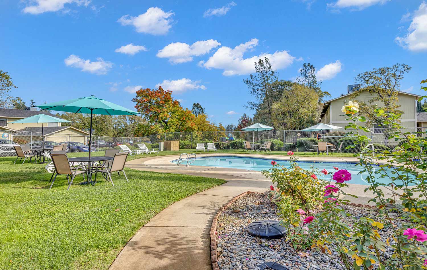 Wavertree Apartments is located at 1640 Victor Avenue #71, Redding, CA 96003. The rental office is conveniently located next to the swimming pool.